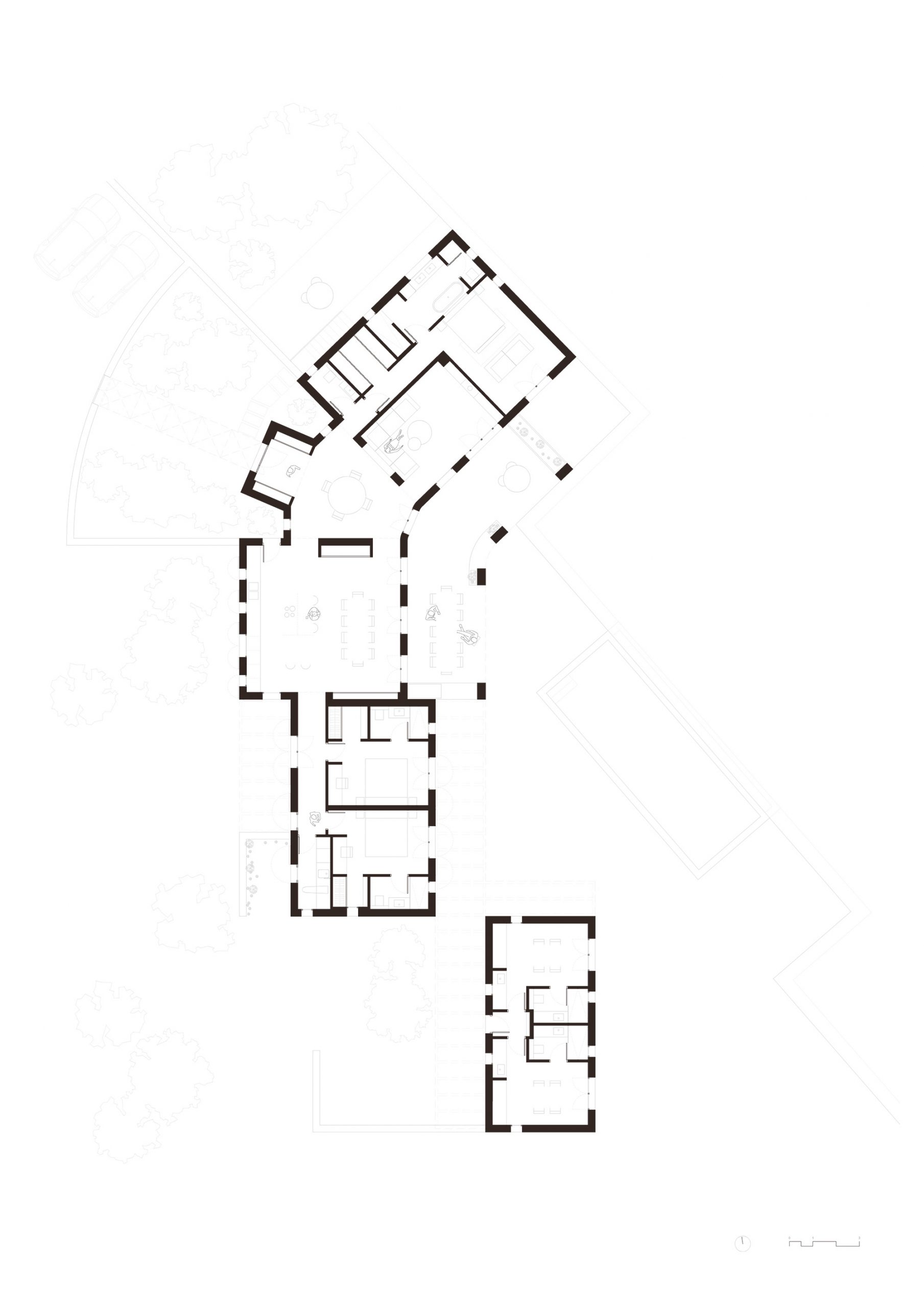 El entorno construido estimula nuestros sentidos para crear una experiencia rica y atractiva que promueva el bienestar emocional y cognitivo de los habitantes. La casa consta de una sola planta baja donde se desarrollan todas las actividades. Las actividades de día se situan en el centro mientras que los espacios de descanso se situan en las alas extremas.